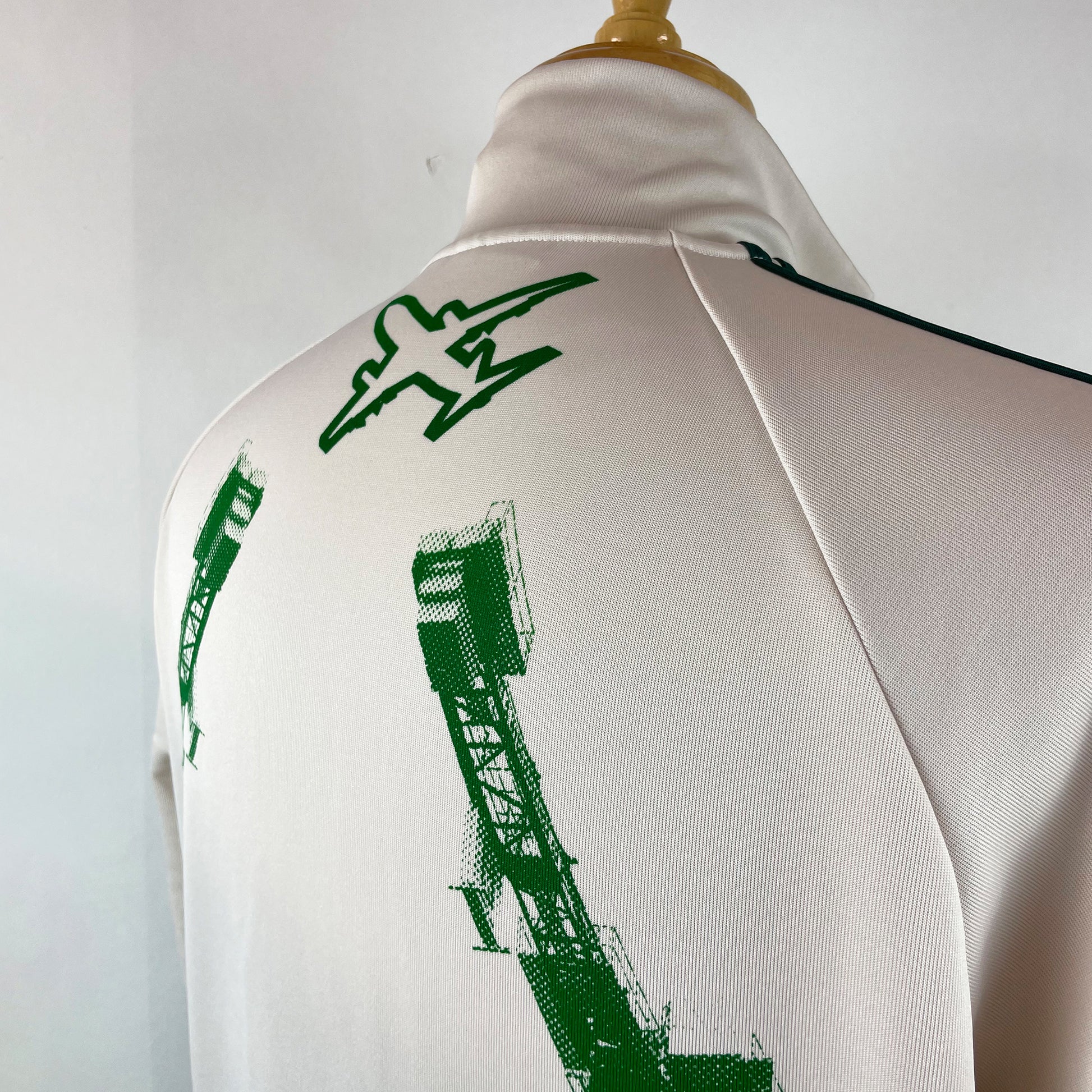 Hand printed with eco friendly water based inks, I take each finished track top home to machine wash it to test the washability of the print. These should be washed cool and hung to dry.