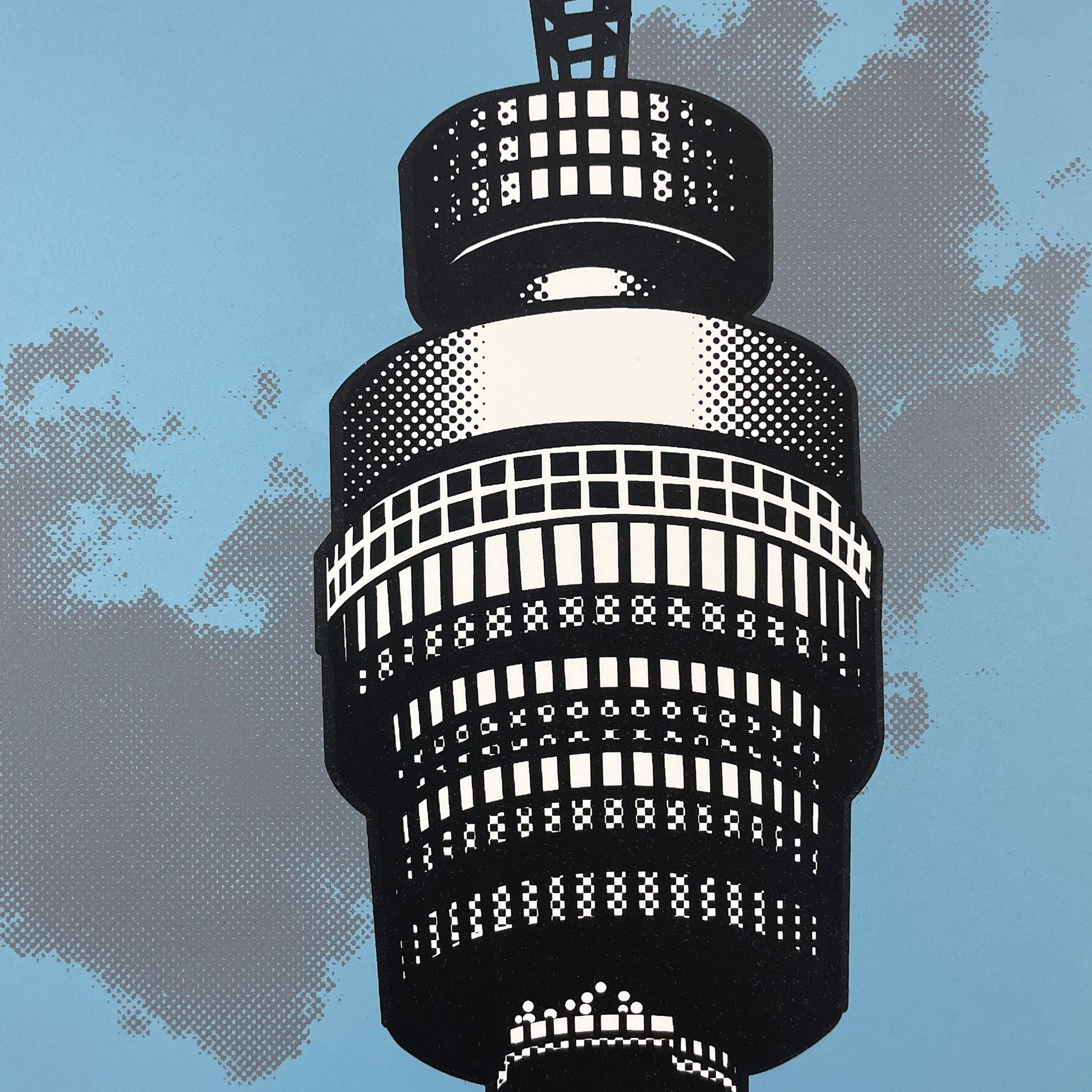A screen-printed study of London’s iconic BT Tower.
