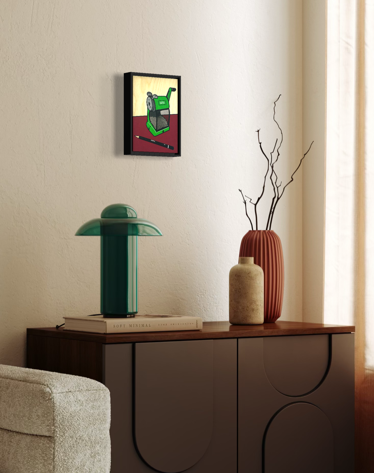 19 x 25 x 3 cm framed.