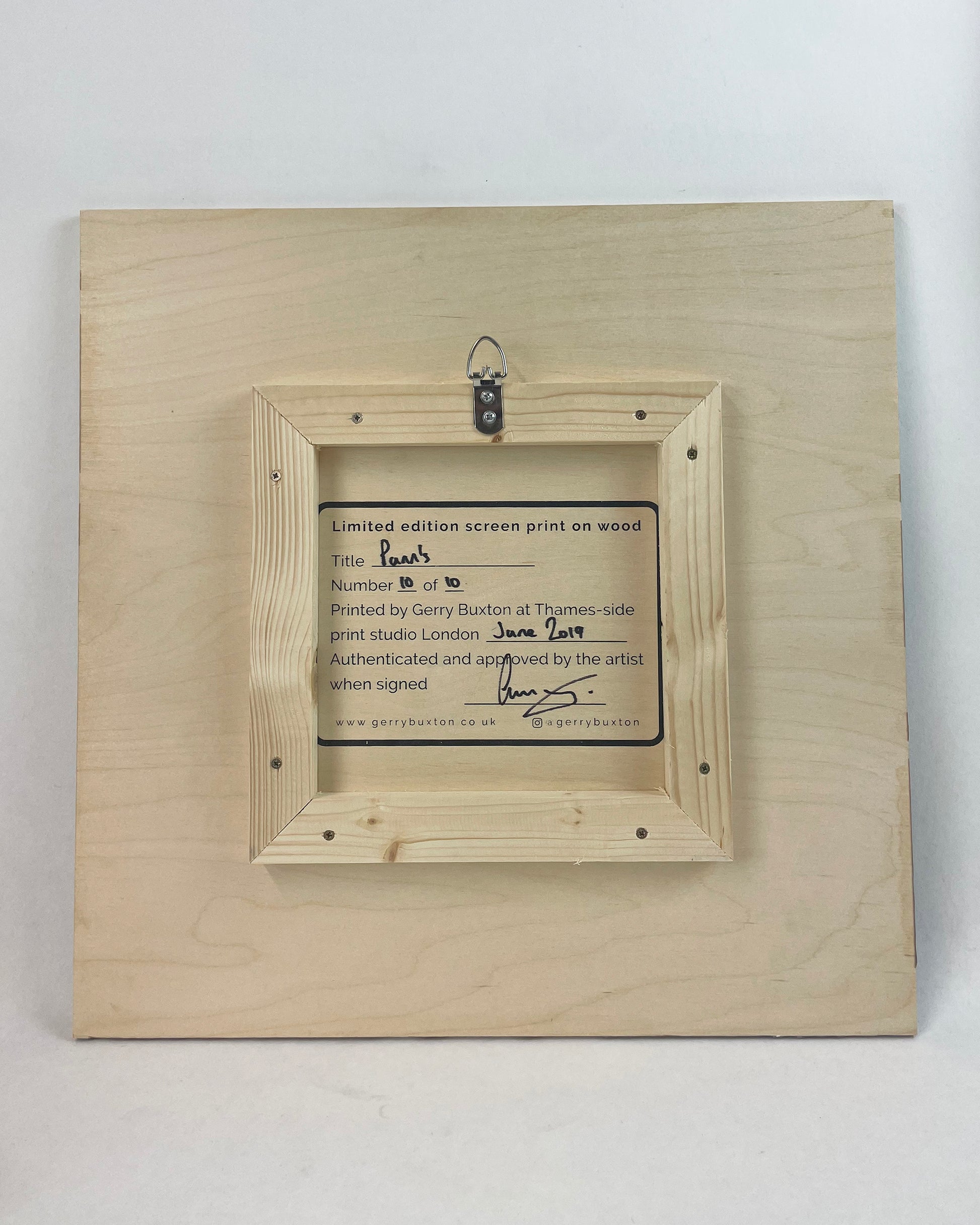 Seven colour screen print on 12mm birch plywood with epoxy resin finish.