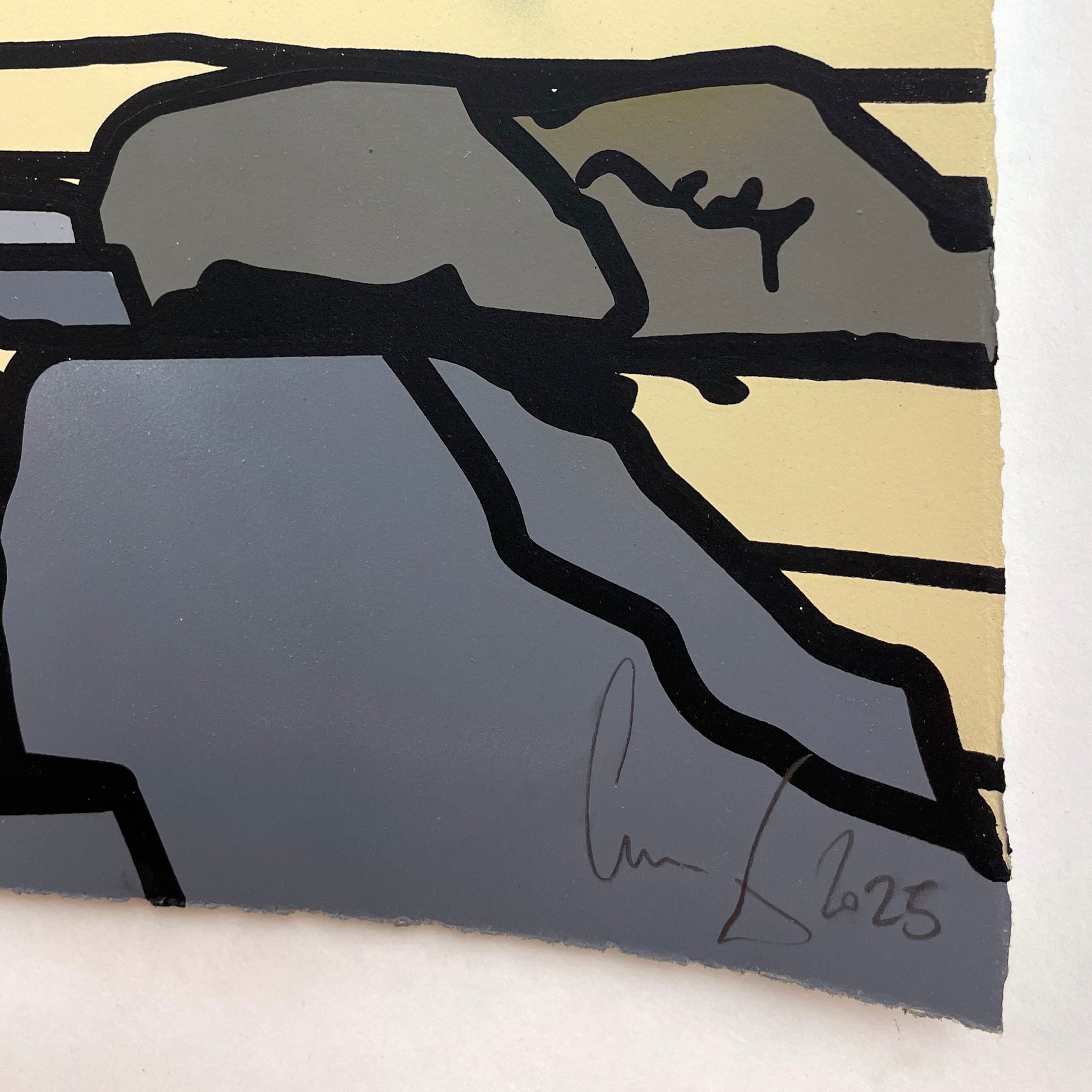At 76 × 112 cm on 300gsm Somerset Satin, these works stand as substantial, one-of-a-kind centrepieces. Bold, pigment-dense surfaces and architectural detail combine to deliver presence and impact on the wall. Each piece is unique, and no further paper works will be produced from this commission.